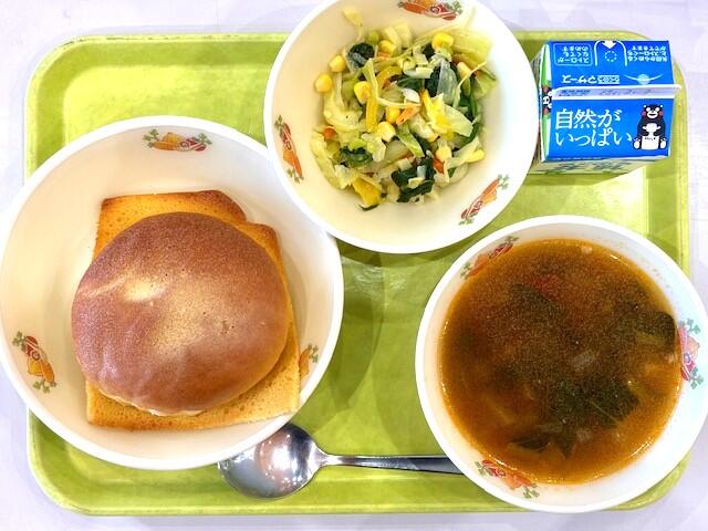 帽子パン、牛乳、冬野菜のミネストローネ、イタリアンサラダ