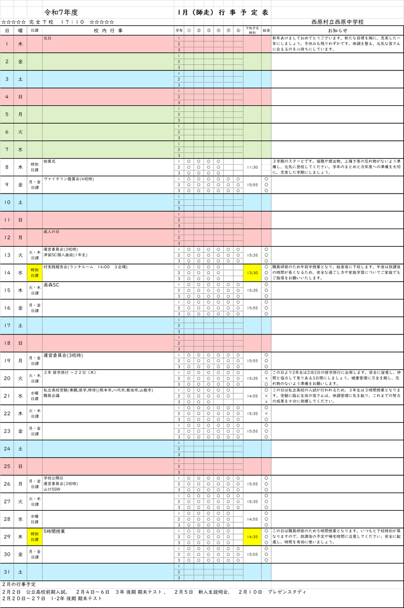 行事予定表