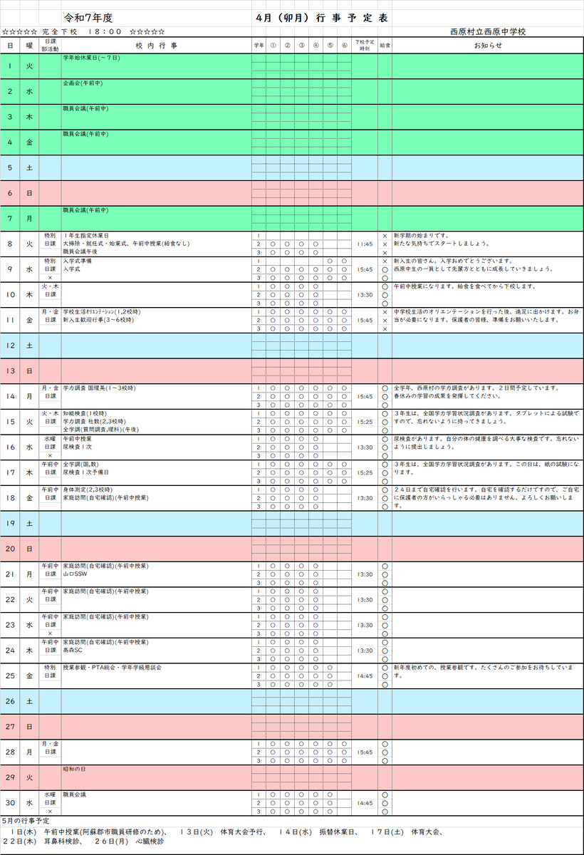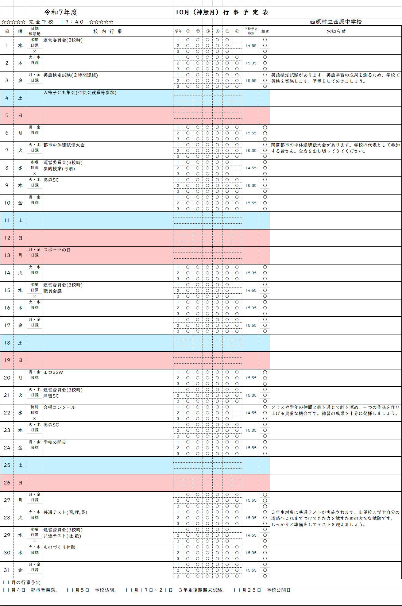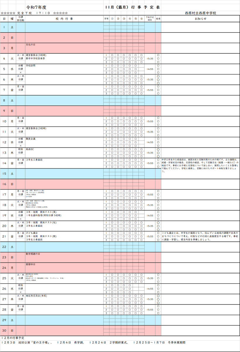 12月2日は5時間授業になります。お迎えなどお間違えが無いようにお願いします。