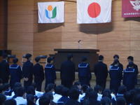 11月27日(水)6校時終了後、「九州中学校駅伝競走大会」の選手推戴式が行われました。選手は、開閉会式で着用するおそろいのウィンドブレーカーに身をつつみ、決意を述べました。保護者の方々、地域の方々、同窓生の皆様、これまでのご支援ありがとうございました。