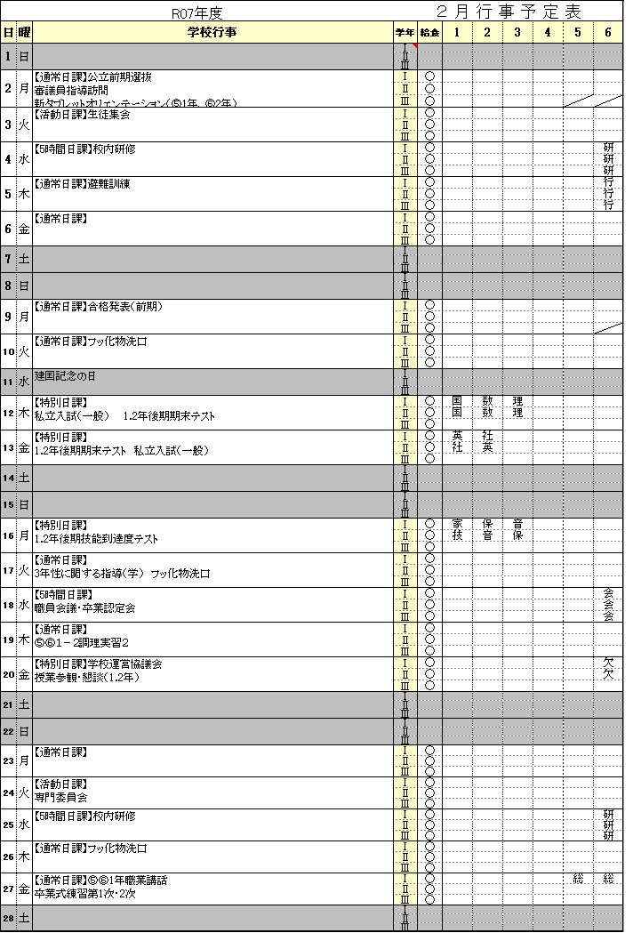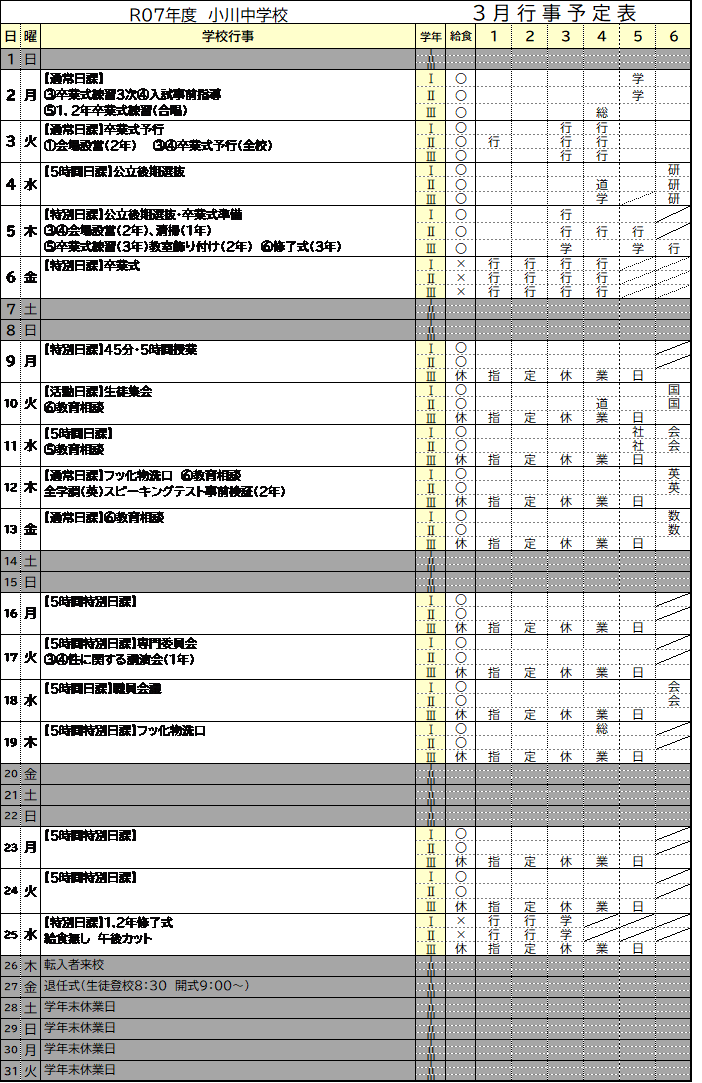 ⚫月行事予定表は、変更することがあります。