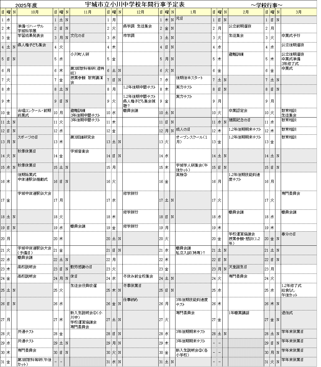 年間行事予定