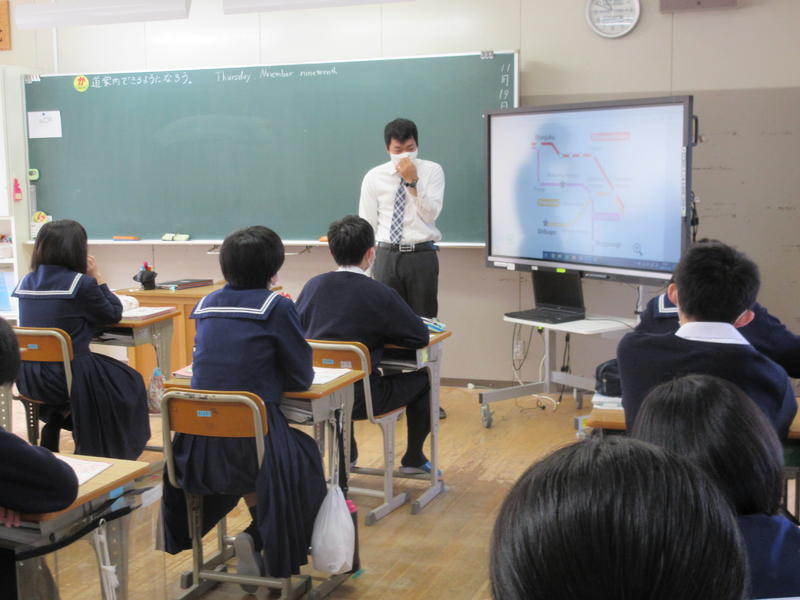 写真は小国中学校で実施された8年生の社会科の様子です。