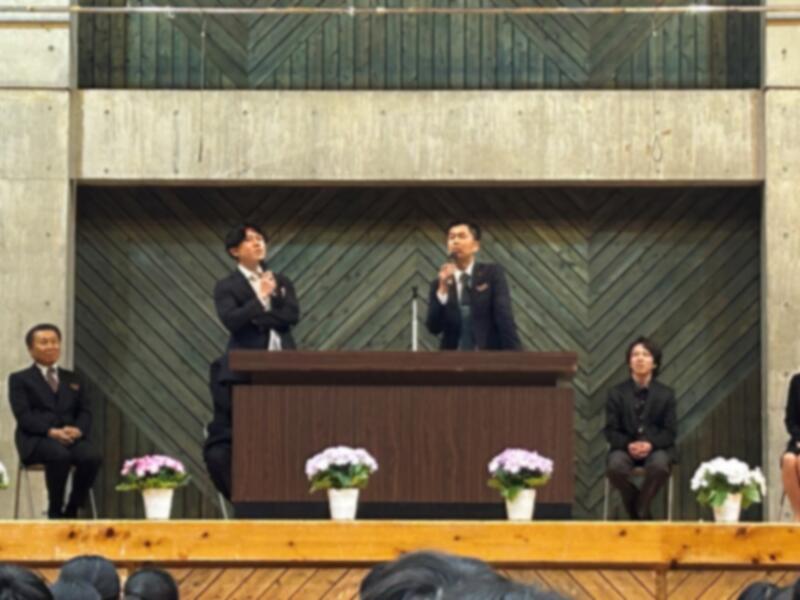 11月28日の午後、生徒会役員選挙立会演説会を行いました。7年生から順に立候補者と応援者で計4分以内で、それぞれの公約を演説しました。演説内容を頭に入れ、工夫しながら堂々と演説する姿は、本当に誰が役員になっても大丈夫と思える内容と態度でした。一人一人が小国中をより良い学校にするために何をしたいのか明確に伝えており、9年生がつないできた小国中の伝統をきっと引き継いでいくことと思います。(校長 真嶋)