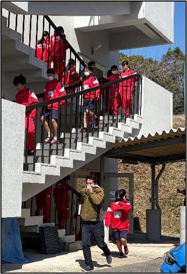 今年度2回目の「避難訓練」を実施しました。2学期から延期したため3年生が卒業した後となりました。出火元になるべく遠いところを通り、運動場の奥へ、火元に背を向けて整列する訓練で、あえて日頃は使わない非常階段を使う想定で避難をしました。