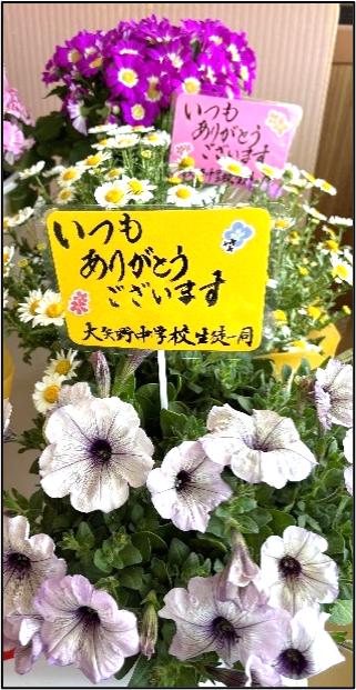 秋から生徒全員が「一人一鉢」として育ててきた花々は、3年生の卒業式を彩ってくれました。今年は、愛情たっぷりだったのか花の生育もとてもいいです。その中から「ペチュニアやサイネリア」などの鉢を、いつもお世話になっている地域の事業所などに、お届けしています。