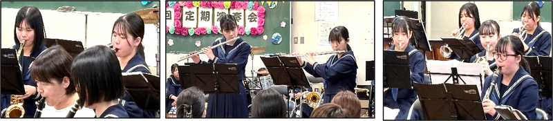 大矢野中学校吹奏楽団が、定期演奏会を開催しました。卒業した3年生9人、高校生3人を含む総勢19人での演奏会でした。3年生の送別の意味も込めた3月の演奏会は6回目。この日はのべ60人ほどの方々が演奏を聴きに集まってくださいました。