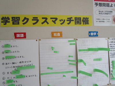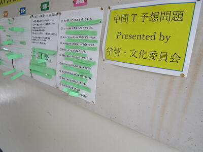 本日より前期中間テストです。これまでの学習の成果を発揮してほしいと思います。今回、生徒会学習委員会の初の取組として、事前学習クラスマッチが行われました。委員会で考えた予想問題を学習して、ピックアップした問題をクラスマッチ形式で取り組むというものです。テストに向けた学習意欲の向上に生徒会でも取り組んでくれました。