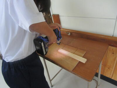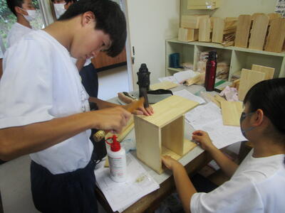 1年生の技術科では、木工作品作りに取り組んでいます。