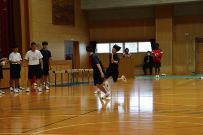 陸上部は体育館狭しとリレーなど披露し走り回りました。