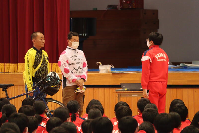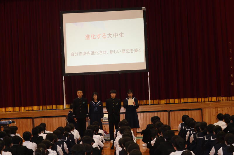 その後、学校生活の1日流れと決まりについて、生徒指導担当の松尾先生からの説明で、全校生徒でしっかりと確認ができました。