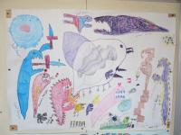保健委員会が作成したペットボトルキャップアートが昇降口にお目にしています。