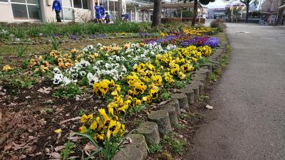 パンジーや水仙が見頃ですね。職員室前の紅梅のこの伸びやかな様子には、毎年励まされます。