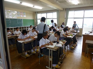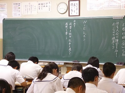 今日は各小学校の前6年生担任や養護教諭の先生をお招きして小中連絡会を行いました。まず5校時目の1年生の授業を参観していただきました。少しは中学生らしく成長していたでしょうか。