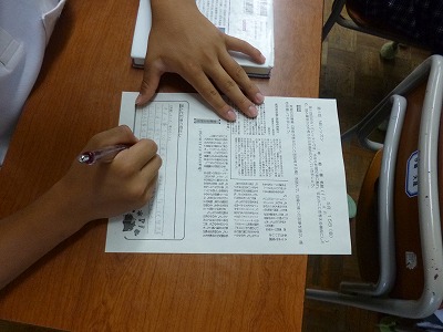 NIE(Newspaper in Education=「エヌ・アイ・イー」と読みます)は、学校などで新聞を教材として活用することです。生徒の言語活動の充実を図るとともに、思考力・判断力・表現力等を育成するための手立てとして、毎月1回実施しています。