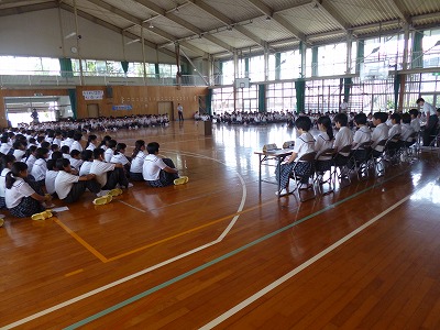 本日3・4校時に第1回校内人権集会がありました。各学級・学年から人権スローガンの発表がありました。