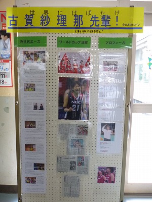 そのあこがれの先輩の活躍の様子をさらに学ぶために、本校昇降口近くに下の写真のように、紹介コーナーが設けられました。今後のさらなるご活躍を大津中学校みんなで応援していきたいと思います。
