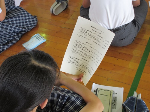 教頭先生、そして人権委員長の赤星さんが、集会の目的や参加に向けての決意を述べました。