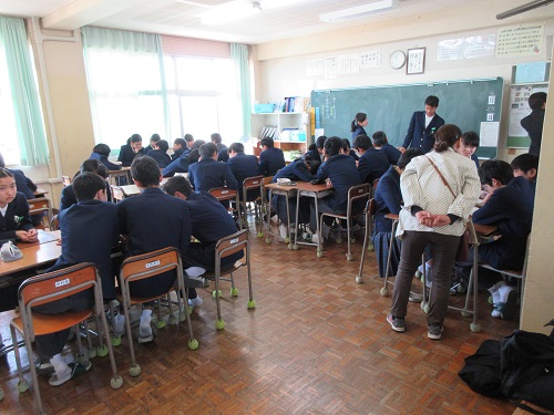 自分たちが経験した2年前の地震が教材に・・・生徒たちもいつも以上に熱心に考えを深めていました。