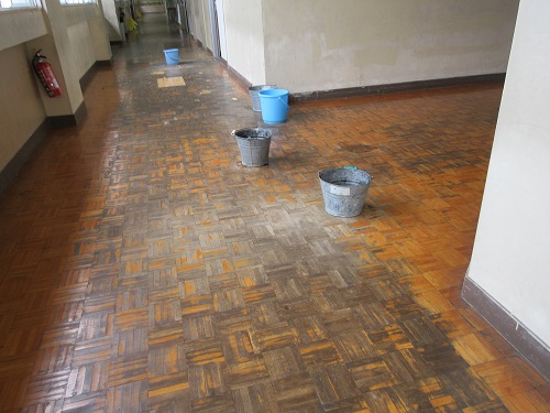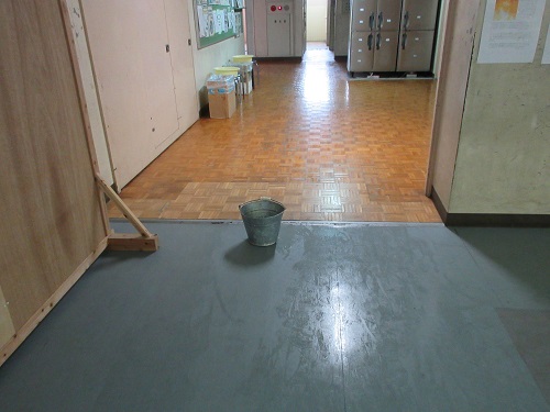 昨日は激しい雨が降り続けましたが、その影響か、3階の廊下の天井から水滴