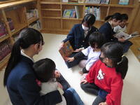図書室で、本校の生徒たちが園児に絵本を読み聞かせる姿が見られました。優しく語りかけながらページをめくる生徒たち、目を輝かせて絵本の世界に引き込まれる園児たち。温かな交流のひとときとなりました。