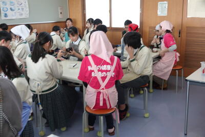 1月22日(水)3・4限目に、2年生がいきなりだご汁の調理実習を行い、試食させていただきました。具だくさんで、いりこだしもきいており、おいしかったです。だごの中には唐芋が入っており、「いきなり」の意味が分かりました。