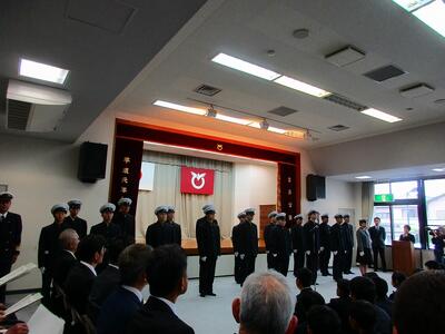 天草拓心高校マリン校舎の海洋科学科19名の熊本丸での初航海に先立ち、出港式が行われました。本式典に3年生が出席しました。出席した生徒は、「高校生がかっこよかったです。」「感動しました。」「熊本丸に乗ってみたい。」等の感想を言っていました。本校の卒業生、田平さんがとても凜々しかったです。