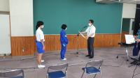 本日(5月6日)に体育大会結団式を行いました。本年度の体育大会テーマは「躍進~新しい風とともに道を拓け~」です。学校長からは「体育大会の成功には「あいさつや2分前着席・1分前学習、スリッパ並べ」など日常生活が演技につながるため、日常生活をしっかり行うことが大切である。それが一生懸命さにつながり、人に感動を与えることにつながる。体育大会テーマは「躍進」、学校テーマは「一歩前に」、ともに前に進むという思いが込められている。リーダーの100歩より全員の一歩を大切にしてほしい。」という言葉がありました。その後、各リーダーに団旗が授与され体育大会成功へ向けての意識を高めました。