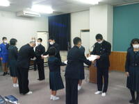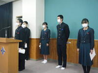 本日、新生徒会三役任命式を行いました。新生徒会三役からは「これからの稜南中学校をさらに良くしていくための決意」が、旧三役からは「新生徒会をしっかりサポートしていくこと」、学校長からは「生徒会のために自分が何ができるかを考え、稜南中学校を一歩前に進めて欲しい」という思いが述べられました。