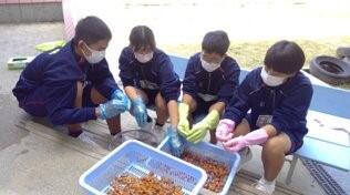 お助けし隊は、「私達の若いパワーを地域のために役立たせたい、助けたい」という思いで活動しています。初めての依頼は、中嶋校長先生からの「校庭の銀杏を片付けてほしい」というものでした。集めた銀杏を加工して販売することで収入を得られ、正に一石二鳥でした。