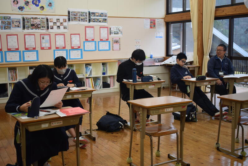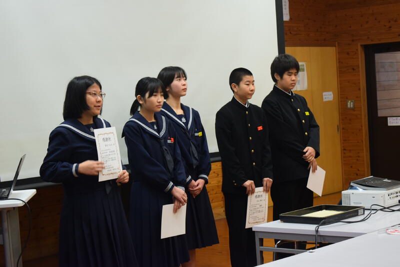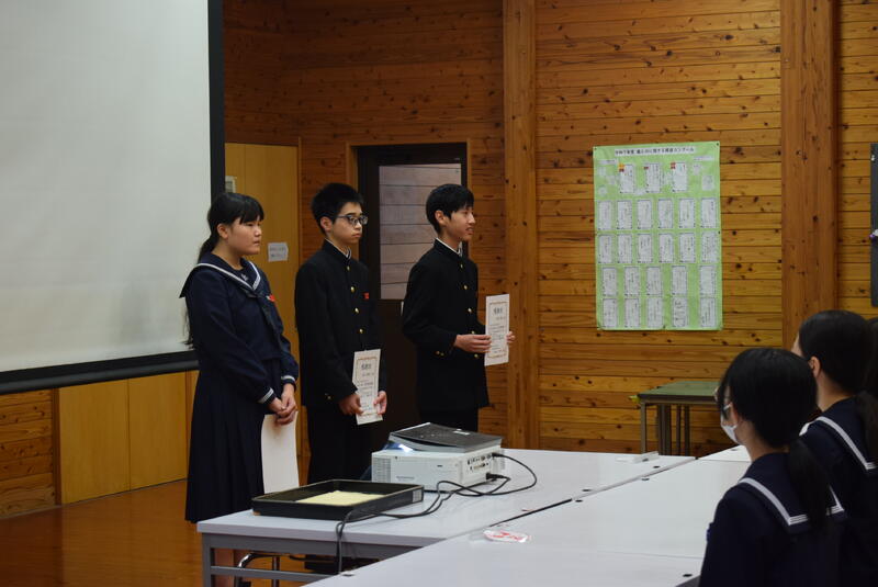 坂本に来られる前の経歴や坂本に来られたきっかけ、現在の仕事、坂本の魅力などについて話をしていただきました。生徒たちからもたくさんの質問にも本音で答えていただきました。生徒は坂本の魅力について再発見し、これからの生き方につなげていこうという気持ちが高まったようです。