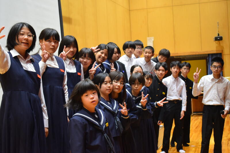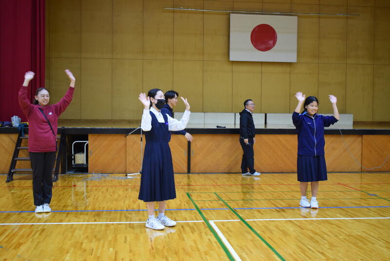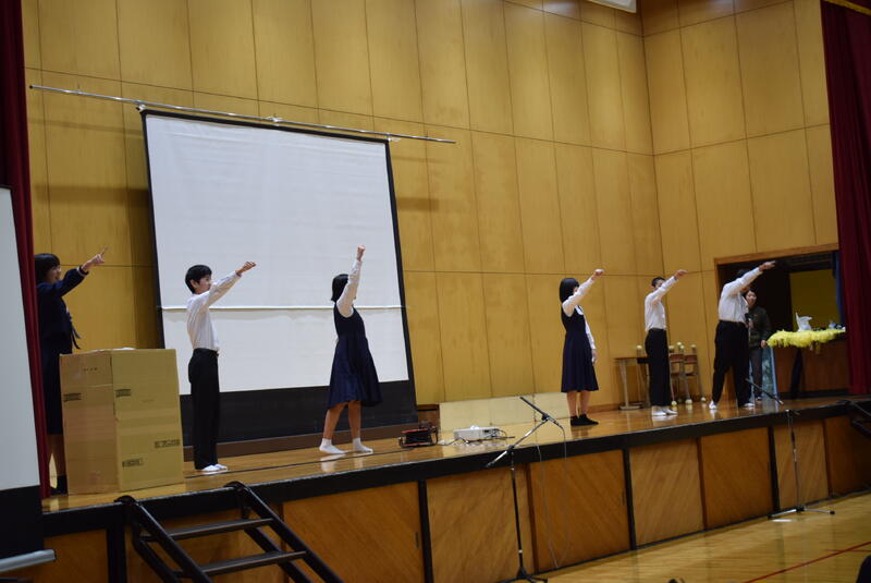今日は「坂本いぶき会」の山本さんと平田さんに来校いただき、坂本音頭の正式な踊り方を伝授してもらいました。今までは見よう見まねで踊っていた生徒も、これで自信を持って踊れます。今週末の文化祭では最後に参加者全員で坂本音頭を踊ります。坂本音頭で「さかもとを元気に!」