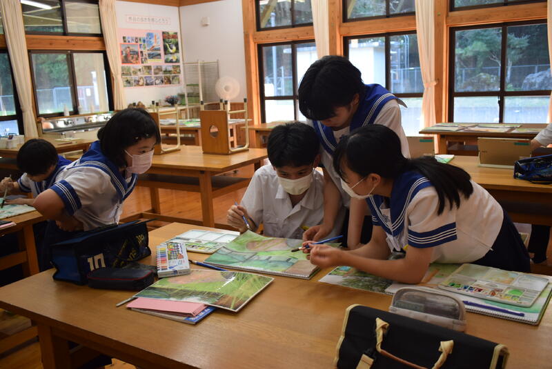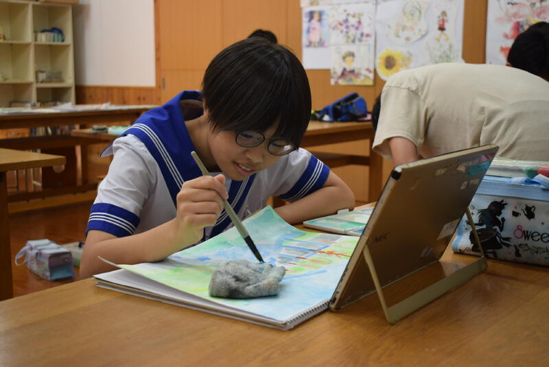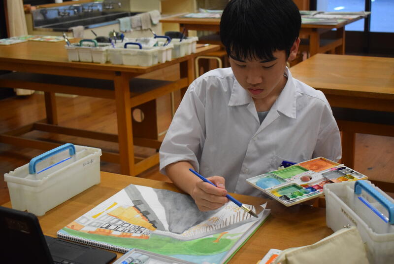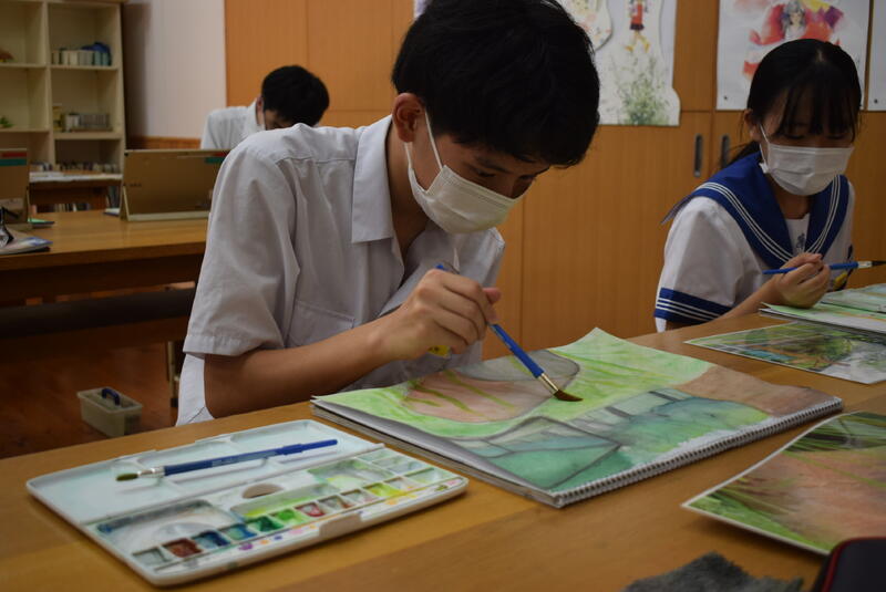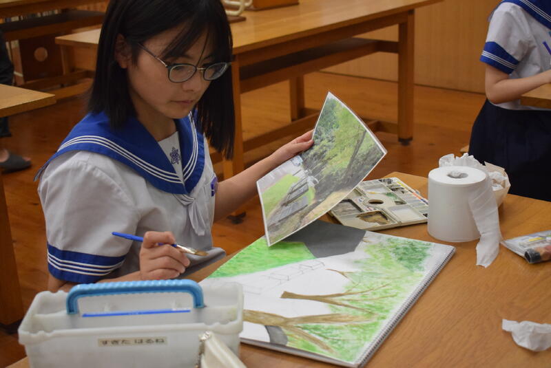 先日の写生大会で描いた作品の完成が近づいてきました。最後の仕上げまで心を込めて描きます。いい作品になりそうです。文化祭での展示をお楽しみに!