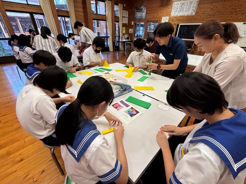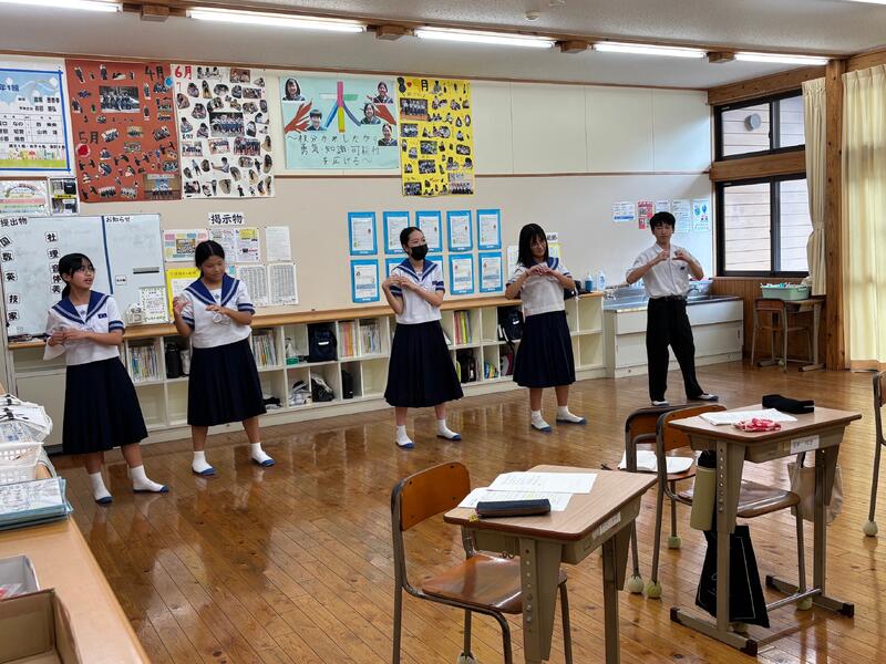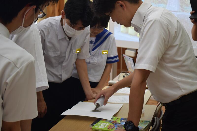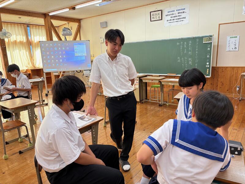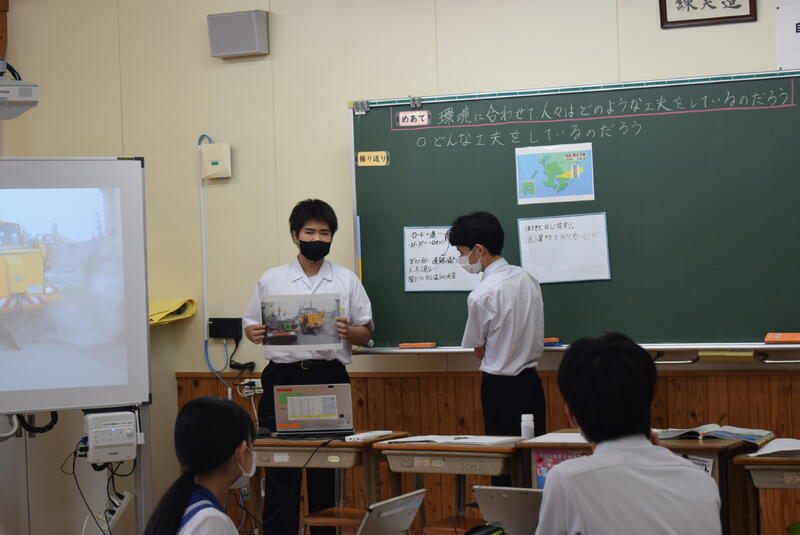 昨日はY先生の社会の研究授業でした。八竜小学校からも3名の先生に参観してもらいました。九州地方の自然災害と共存する人々のくらしについて学習しました。桜島の火山灰を取り上げた場面では、実際の桜島の火山灰(Y先生がラ〇テンで購入)を生徒に触らせたり、学生時代の体験談(Y先生は鹿児島の大学出身)を紹介したりして、生徒の関心を高めていました。楽しい授業でした。