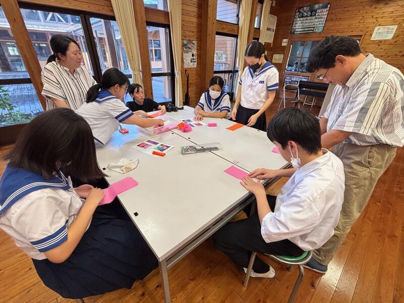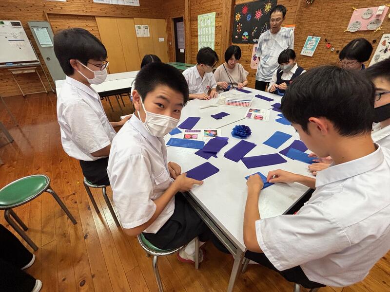 今日は50周年記念のパネル製作で使う花紙を作りました。初めて作るという生徒も多く、最初は戸惑っていましたが、お互い助け合いながら、次々に仕上げていきました。記念パネルは文化祭1週間前に完成予定です。