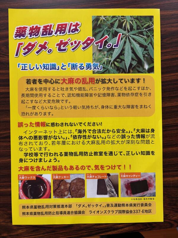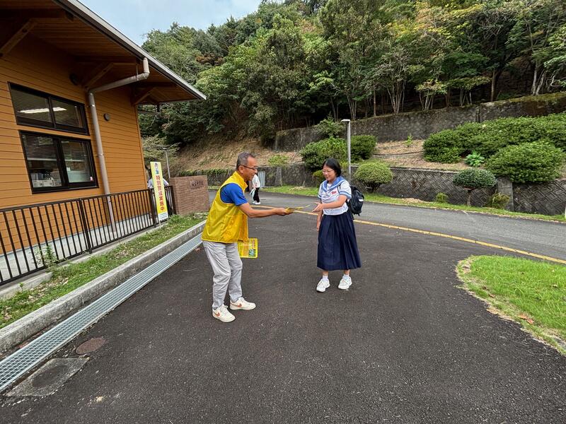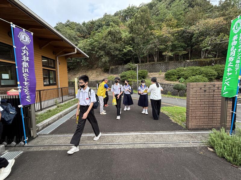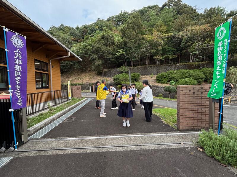 今日は八代球磨川ライオンズクラブの松村さん(本校の卒業生)が来校され、登校する生徒一人一人に薬物乱用防止を呼びかけるチラシを配付していただきました。生徒たちは笑顔で受け取りながら、改めて「薬物には絶対に手を出さない」という思いを強くしていました。地域の皆様の温かいご支援に感謝するとともに、今後も学校・家庭・地域が一体となって、子どもたちの健全な成長を支えていきたいと思います。