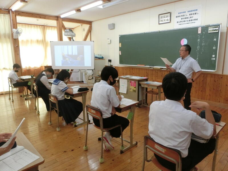 先日行ったY先生の道徳の研究授業の様子です。教壇に立って半年が過ぎました。生徒とともに日々成長を続けていることを頼もしく思います。授業でも生徒目線に立った問いかけや支援が行われていました。話し合い活動でも、活発な意見交換ができていました。来週は社会科の研究授業が計画されています。
