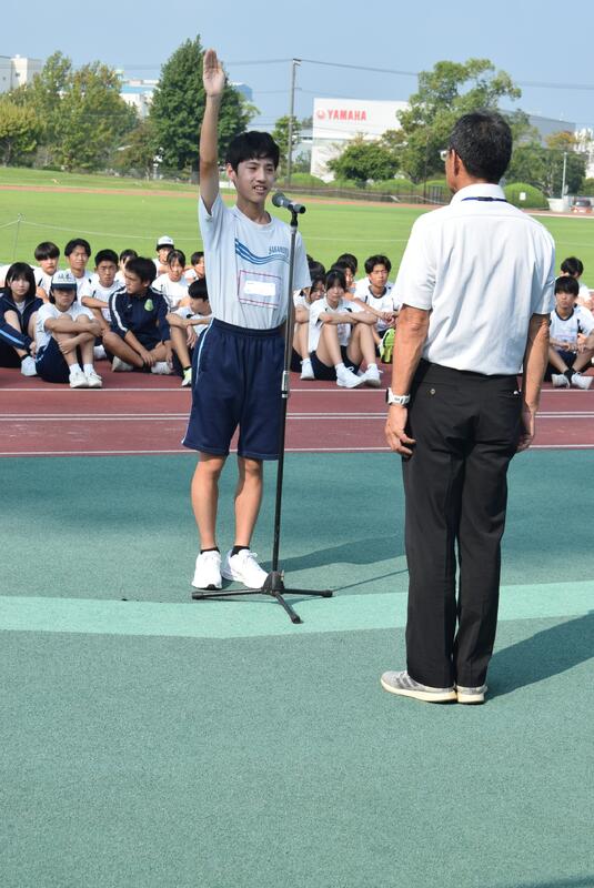 昨日は中体連駅伝競走大会の出発式がありました。選手を代表してS・IさんとK・Hさんが力強く決意を述べました。大会は明日(10月16日)です。暑い夏をみんなで乗り越えて逞しくなりました。力走を期待しています。ご声援よろしくお願いします。