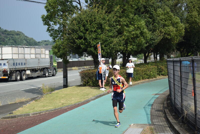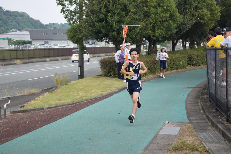 今日は、八代運動公園で八代中体連駅伝競走大会が行われました。開会式では八代の全中学校の代表として、S・Iさんが選手宣誓をしました。とても感動的な宣誓で、終わった後には大きな拍手が沸きました。レースは10月とは思えない暑さの中でしたが、全選手が賢明な走りを見せ、無事に最後まで襷を繋ぐことができました。応援の生徒も声をからすくらい一生懸命応援し、とても感動的な大会になりました。保護者の皆さまも、応援ありがとうございました。