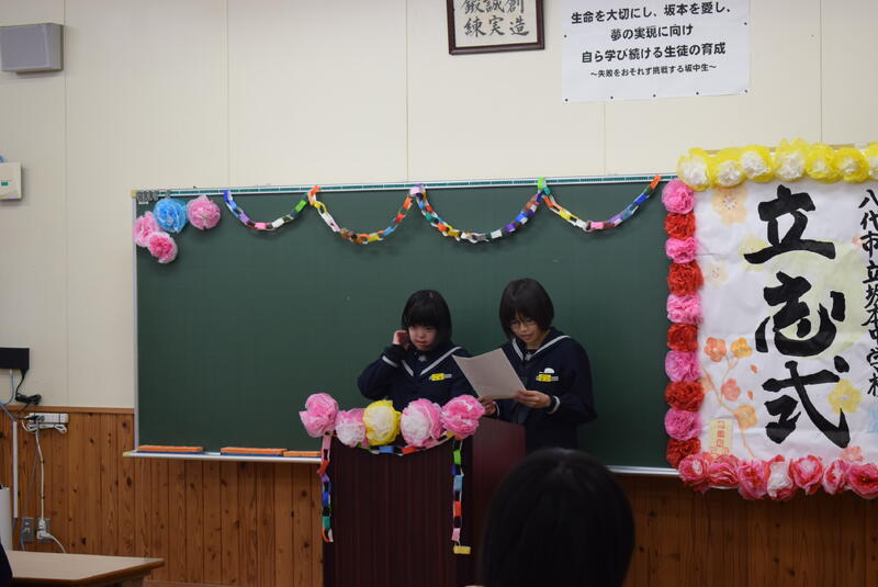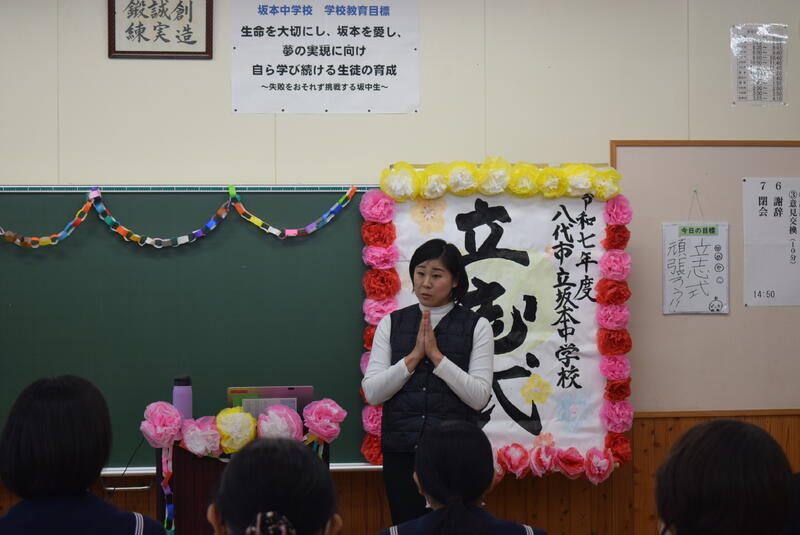 今日は、授業参観でした。多くのご出席ありがとうございました。2年生は立志式を行いました。生徒一人一人が将来の自分を思い描きながら、これからの生き方や目標について決意表明を行いました。その後、地域おこし協力隊員の柳本さんをお迎えし、記念講演をしていただきました。ご自身の経験をもとに語られた言葉は、生徒たちにとって、これからの進路や生き方を考える大きなきっかけとなったようです。
