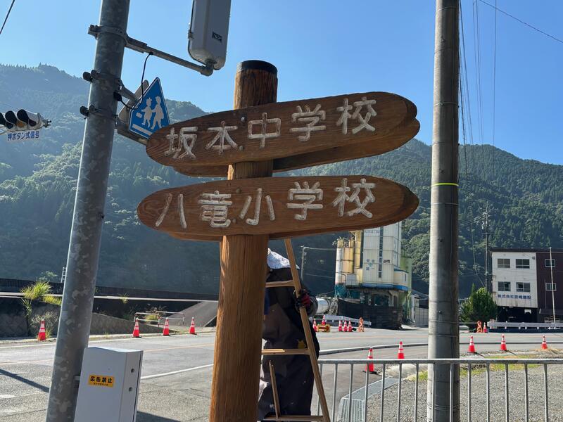 国道から中学校へ入るところに立っている案内板を、用務員のS先生にきれいにしてもらいました。暑い中、ありがとうございました。