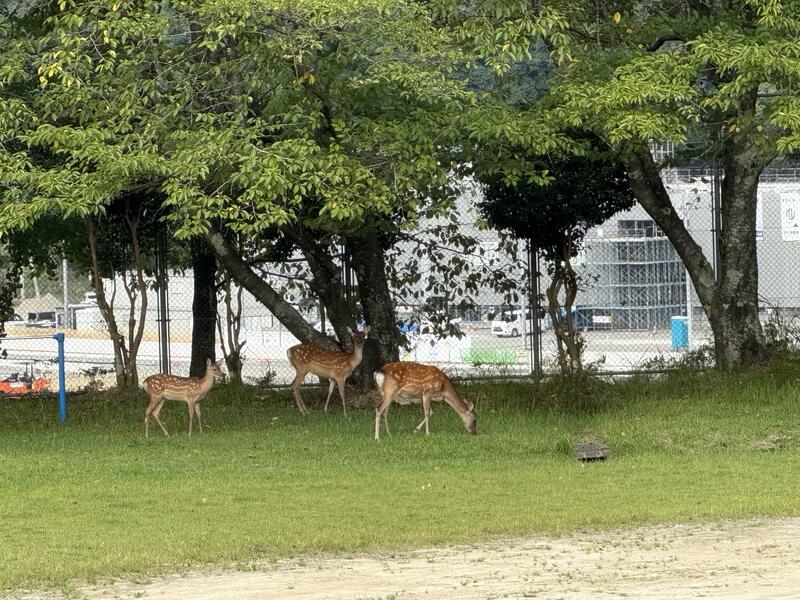 最近、全国各地でクマが出没しているようですが、坂本中には頻繁にシカが出没します。先日は珍しく昼間に現れました。親子でしょうか?