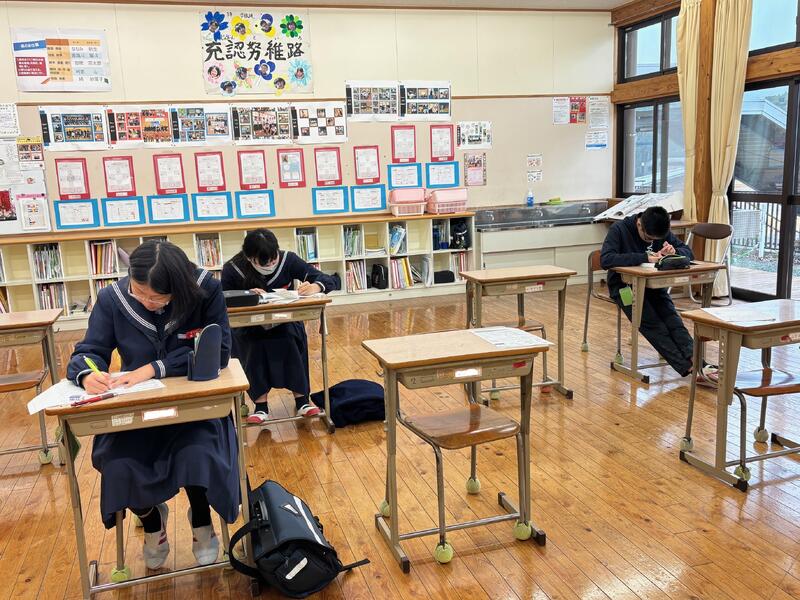 また、3年教室には自主学習にやってきた3年生(別名受験生)の姿がありました。体育館ではバドミントン部の練習が行われており、冬休みになっても活気ある学校です。