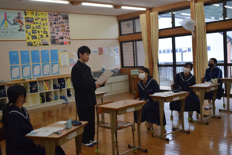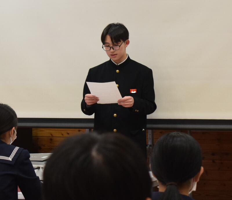 【終業式での学年代表発表】