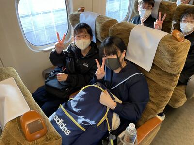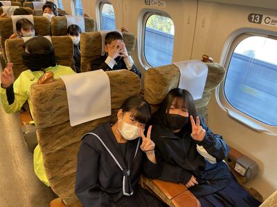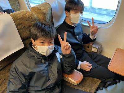 新幹線に乗っていよいよ広島に行きます。新幹線でも賑やかに楽しく過ごしています。