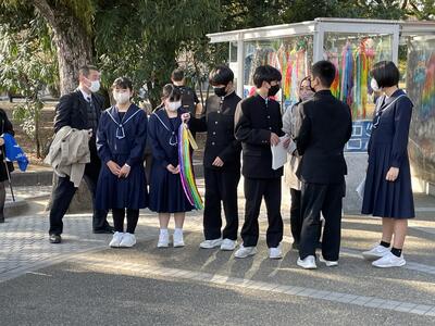 原爆投下当日の話や、平和を願った建造物に取り組みについて学習しました。