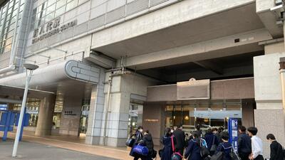新大阪駅に到着しました。トイレ休憩後バスに乗って最初の目的地へ向かいます。