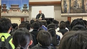 薬師寺に行ってきました。お坊さんのお話しを聞きました。中学生に合わせて笑いを交えて話していただき楽しく聞かせてもらいました。後半は「学ぶ」ということについてみんな真剣に聞き入っていました。