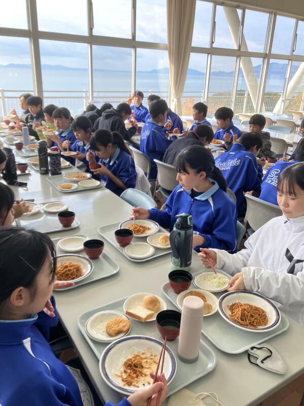 佐敷中学校を出発し、あしきた青少年の家に着きました。