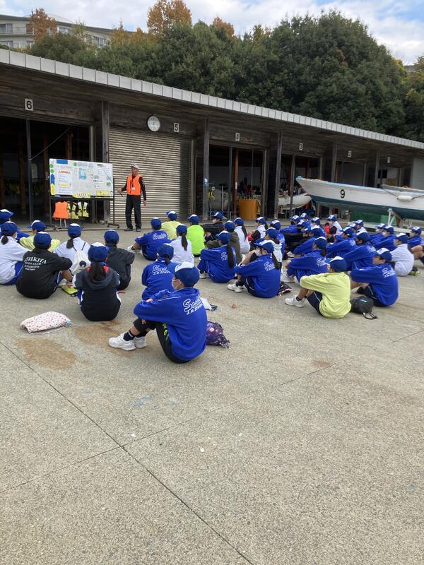 いよいよカッター船の準備の時間になりました。みんな説明を聞いています。